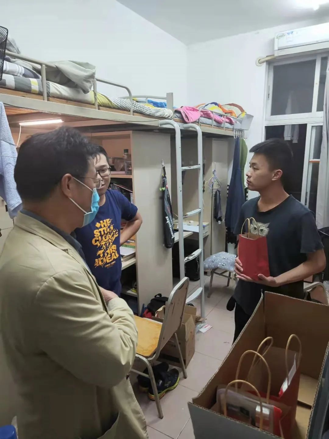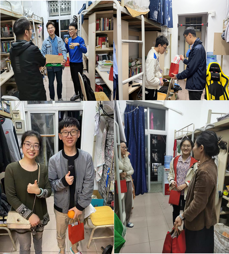为了不影响同学们备考,师生代表们在晚饭后将考研礼包分组亲自送到同学们的宿舍,当面为同学们加油鼓劲,传授心得,缓解同学们考前的焦虑情绪。老师们一再叮嘱考研同学:越到关键时刻就越要沉住气,要有必胜的信心,最后的备考阶段一定要科学饮食,规律作息,将自己调整到最佳状态。