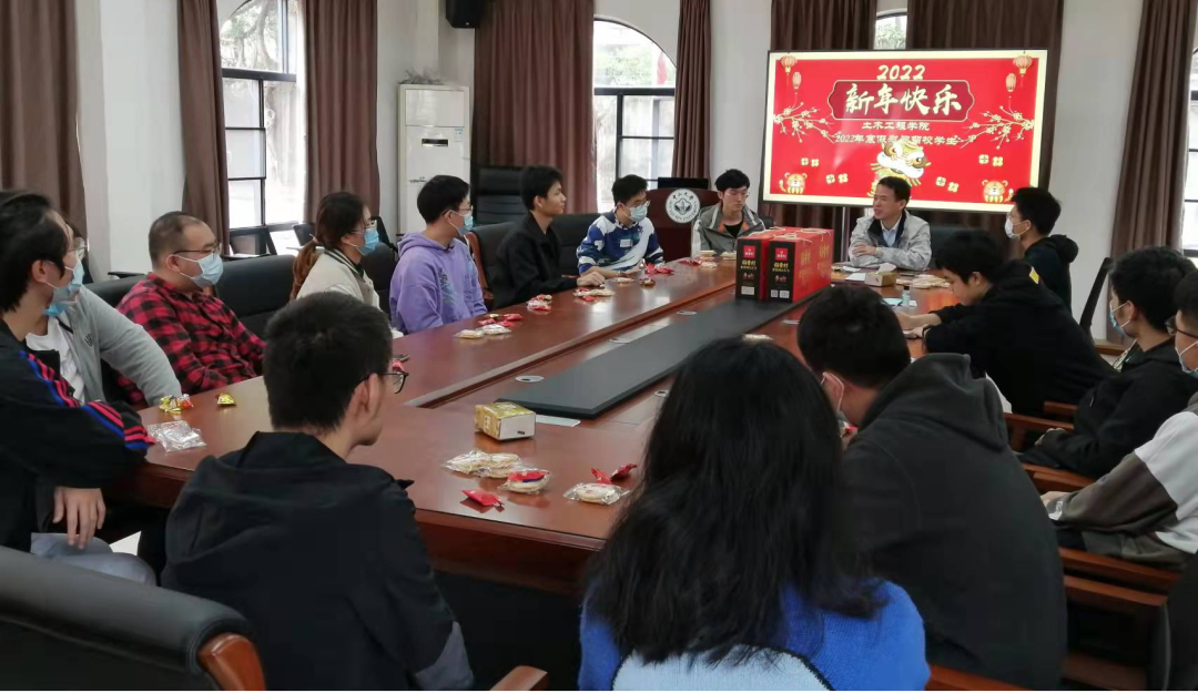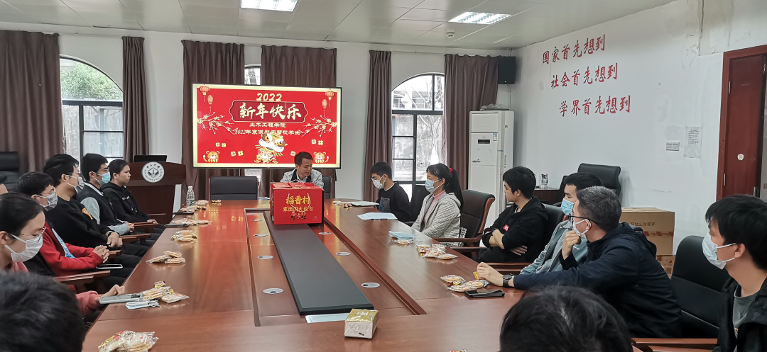 曹新书记和林凯荣副院长代表学院向留校的同学们表示慰问,祝福大家过一个健康、快乐、难忘的中国年!曹新书记希望同学们寒假期间一要积极关注国内外大事,比如即将到来的2022年北京冬奥会,学习之余观看赛事积极为我国体育健儿们加油助威;二要劳逸结合,养成好的习惯,多锻炼身体,保持良好的身心状态,做好个人疫情防护前提下有机会到学校周边多走走,见识一下风俗人情,丰富自己的人生经验和阅历;三要多跟同学、老师和亲朋好友们沟通交流,通过视频或电话跟家人们经常联系,沟通感情;四要回顾总结过去一年,为新学期“充电”,做好新学期准备。他以高松校长在学校党的建设工作大会上的讲话寄语同学们,成为一名面向未来的学生需要具备学习力、思想力和行动力,做到主动学习、研究性学习、实践学习和国际化学习。