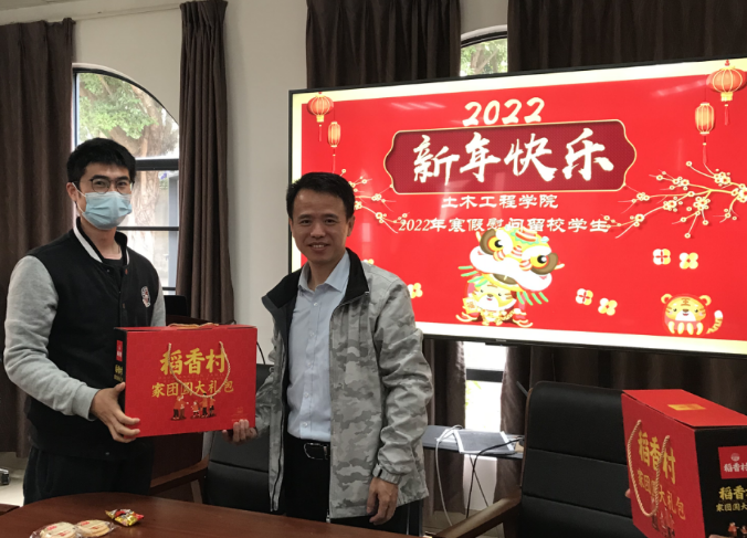 曹新书记和林凯荣副院长代表学院向每位同学发放了新春大礼包,祝愿大家新春愉快、身体健康、心想事成!