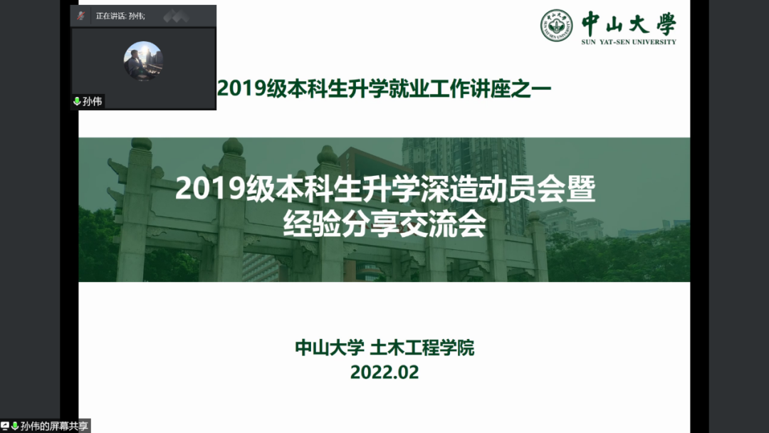 孙伟老师先介绍了国内高校本科生升学概况,指出重点高校本科生继续升学深造已成大势所趋。结合自身学习经历,他分析了升学深造对本科生个人发展的深远影响:更高层次的学习可以充分发掘自身潜力,也可以帮助自己结识更多优秀的老师和朋辈。