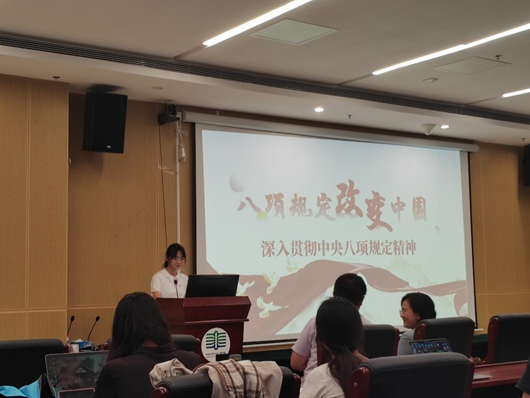 国际关系学院研究生第一党支部代表作“深入贯彻中央八项规定精神”的专题导学。他从中央八项规定的历史逻辑、主要内容与显著成效、当前作风建设面临的挑战与对策等维度进行介绍,让大家深化了对八项规定精神内涵的理解,增强了在日常学习、科研和生活中落实中央精神的政治自觉和行动自觉。