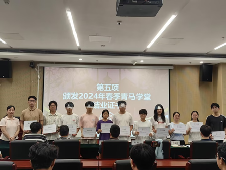 麦伟立老师代表学院团委宣读了2024年春季青马学堂结业决定。他指出,青马学堂是为了培养一批具有忠诚的政治品格、浓厚的家国情怀、扎实的理论功底、突出的能力素质、良好的道德品质的青年政治骨干。青马学员经过青马学堂的培养能顺利结业的评判标准,不仅仅是参加各类志愿服务活动的次数和志愿时长等,还要看其是否真正为同学们服务,服务能力如何、同学们是否满意等。殷敏副书记为顺利结业的学员颁发了结业证书。