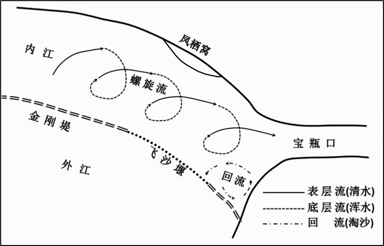 ▲飞沙堰清砂原理图