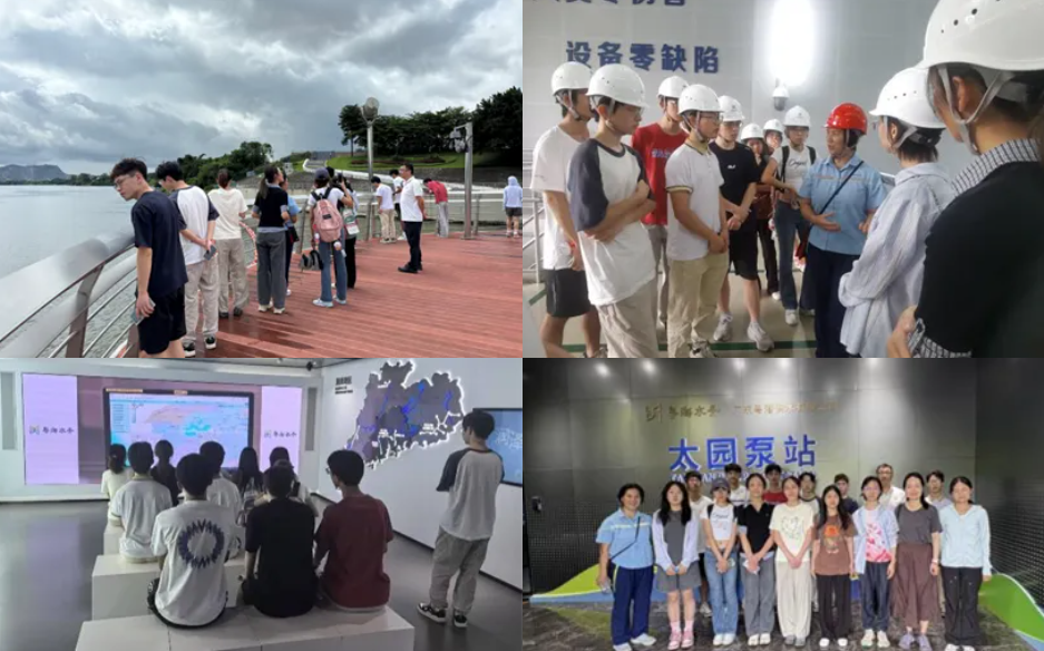 加强水环境治理,推进美丽河湖建设,是落实国家生态文明建设的重要举措。同学们实地考察惠州市白沙仔排涝泵站和金山湖碧道提升工程,深入了解了当地实施的“一湖四河”全流域系统治理模式。通过截污治污、河道整治、水系连通等综合治理手段,以及碧道驿站等建设,不仅消除了城市洪涝隐患,而且显著提升了周边生态环境,成为人民群众美好生活向往的好去处。参观激流坑水库时,技术人员介绍了水利经济转型发展的典型案例——通过建设嬉水乐园和水上运动中心,将传统水库改造为集生态保护与休闲运动于一体的多功能公园。漫步在以陶瓷荧光石铺就的环湖碧道,同学们切身感受到水利工程的创新发展路径,对如何实现水生态保护与绿色经济发展的有机统一有了更深层次的认识。