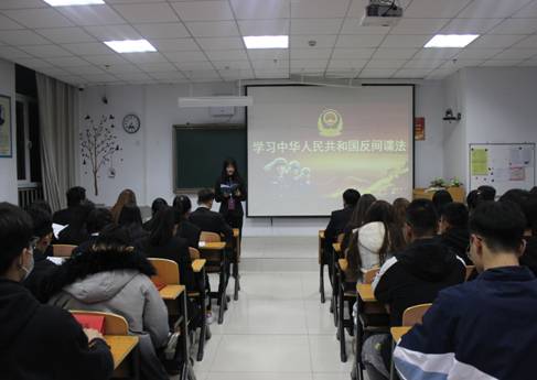 为提高协会同学的安全意识,增强抵制敌对势力渗透、自觉保卫国家秘密的能力,校园安全志愿者协会于2020年11月3日在逸夫楼2Y104组织学习了《中华人民共和国反间谍法》。