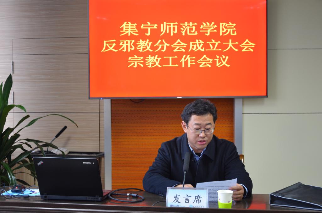 为深入贯彻落实中央、自治区、乌兰察布市有关宗教工作和反邪教工作的政策精神与决策部署,使广大青年学生健康成长,增强识别邪教、抵制邪教的能力,学校决定成立乌兰察布市反邪教协会beat365在线唯一官网反邪教分会。12月6日下午,beat365在行政楼五楼会议室召开反邪教分会成立大会,校党委书记刘前贵,党委副书记、纪委书记张利平,党委副书记刘春,乌兰察布市反邪教协会办公室主任菊立泰出席本次会议。党委委员、宣传部部长张富主持会议。