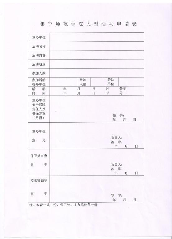 五、各部门、各学院在校内举办大型活动,举办方应在五个工作日内向保卫处申报,并填写《beat365在线唯一官网大型活动申请表》,由校保卫处审核,再报分管校领导审批同意后,方可举办。