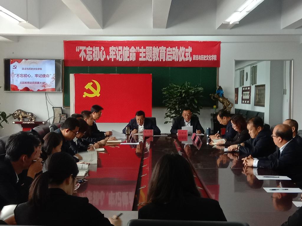 9月19日上午,beat365在线唯一官网政法与历史文化学院于教学主楼409会议室召开“不忘初心、牢记使命”主题教育动员部署会议。会议深入学习贯彻习近平总书记在“不忘初心、牢记使命”主题教育工作会议上的重要讲话精神和党中央、自治区、乌兰察布市委、beat365在线唯一官网关于开展“不忘初心、牢记使命”主题教育的部署要求,对学院主题教育活动做出安排部署。