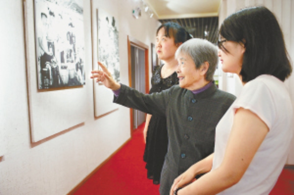 龚全珍(中)在当地烈士纪念馆向人们讲述丈夫甘祖昌将军的故事(5月21日摄)。记者 胡晨欢摄