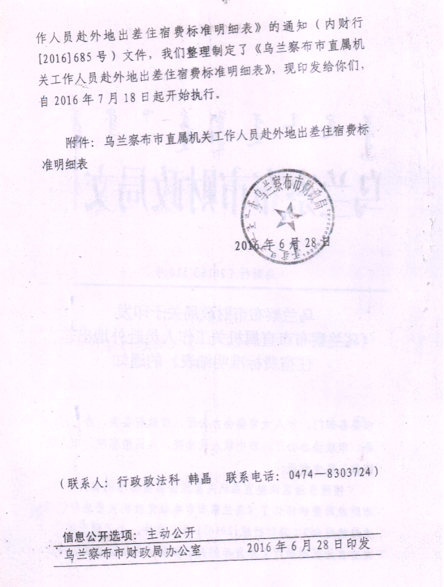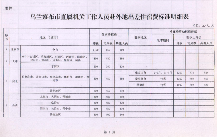 乌兰察布市直属机关工作人员赴外地出差住宿标准明细表.pdf