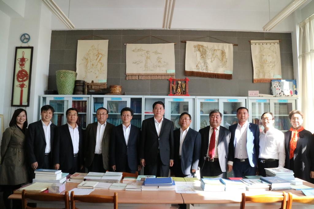 随后,两校领导共同为“蒙古族及北疆少数民族文化传承与发展协同创新中心”揭牌。揭牌仪式结束后,与会领导专家视察了协同创新中心资料室,参观了由察右后旗察哈尔文化协同创新基地举办的察哈尔文化研发成果展览。