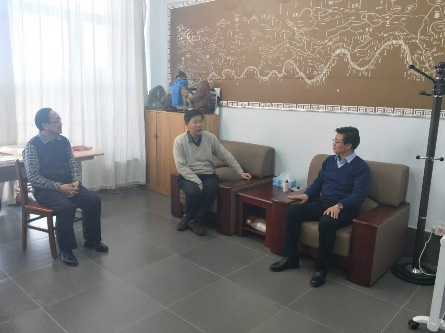 2018年12月29日,beat365党委副书记、校长朱玉东,政法与历史文化学院院长、察哈尔文化研究院副院长欧军到察哈尔文化研究所看望贺金瑞教授,双方进行了亲切交谈。