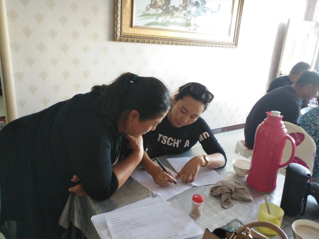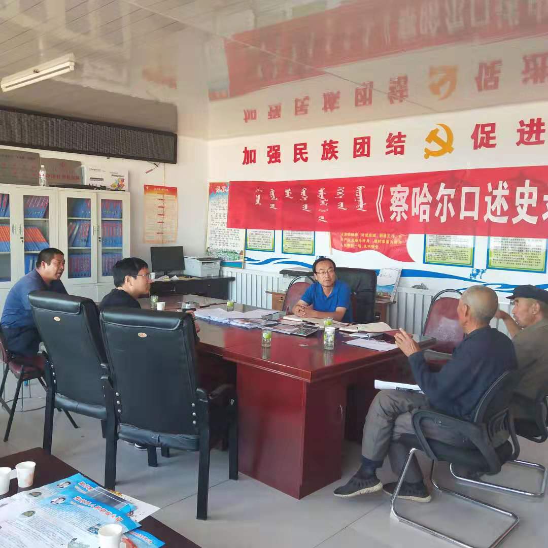 8月20日上午,调研组欧军、乌恩其、额尔敦其其格、乌兰其其格、铁梅、朝木日力格6人前往察右后旗继续开展调查。本次活动得到后旗民委主任钢铁木尔、成格乐太等人的大力支持,通过集体访谈、个别访谈,每位考察组成员对察哈尔历史、民俗有了更深层次的了解。下午在民委工作人员的陪同下调研组前往后旗塔斯海嘎查和娜仁格日乐嘎查进行了走访调查。
