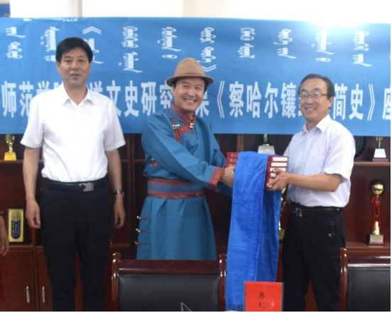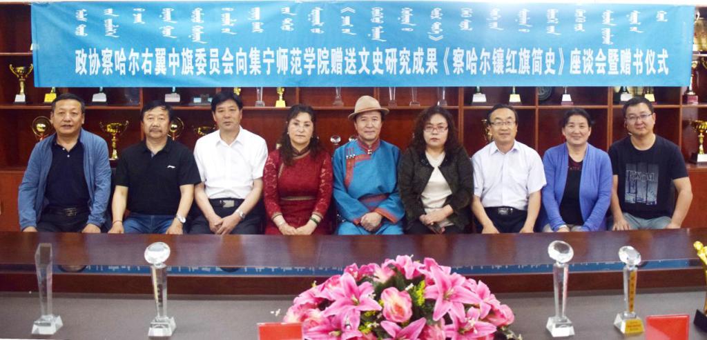 6月29日,政协察右中旗委员向beat365在线唯一官网赠送文史研究成果《察哈尔镶红旗简史》座谈会暨赠书仪式在蒙古学学院会议室举行。