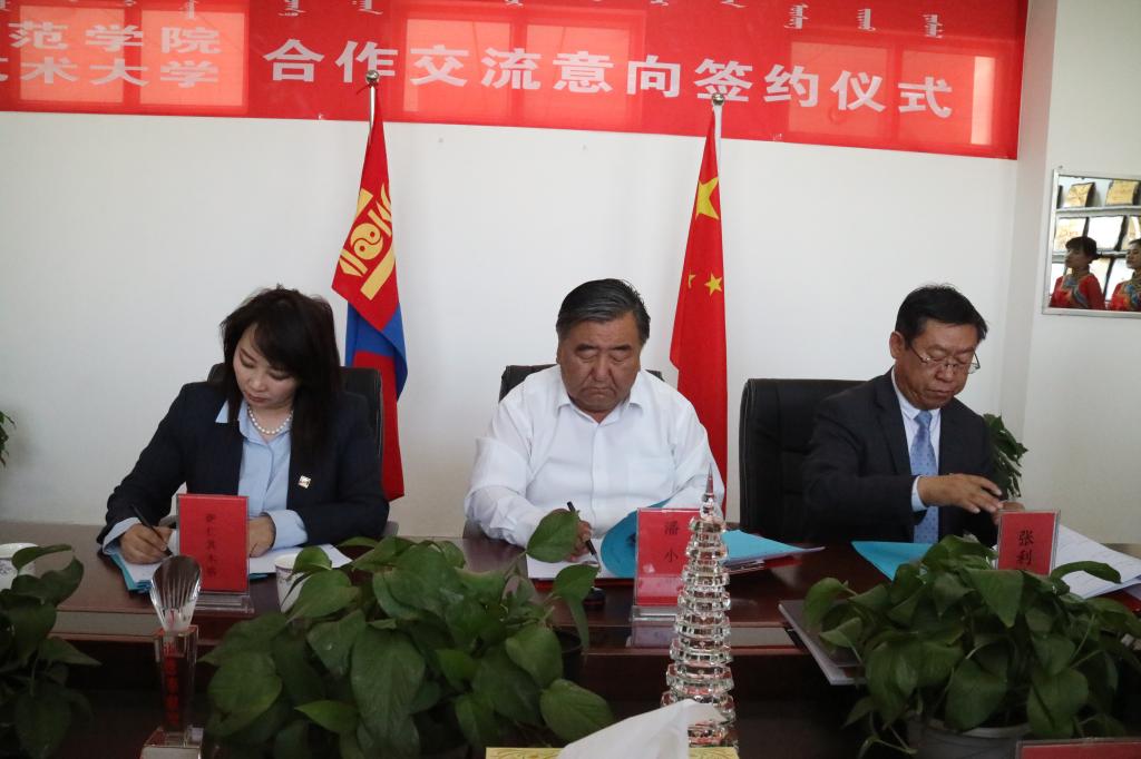 考察团一行参观考察了beat365在线唯一官网校史馆,了解学校历史沿革和发展历程、校园文化和深厚历史积淀、办学的实力和成就。参观考察了蒙古学学院的蒙古绣艺室、传统游戏室和蒙古族民俗陈列室,感受蒙古族传统文化的深厚底蕴和传承发展的时代魅力。参观考察了音乐学院的教学环境、教学设施和排练厅、演出厅等。并在音乐学院进行座谈举行了交流合作项目签署仪式。