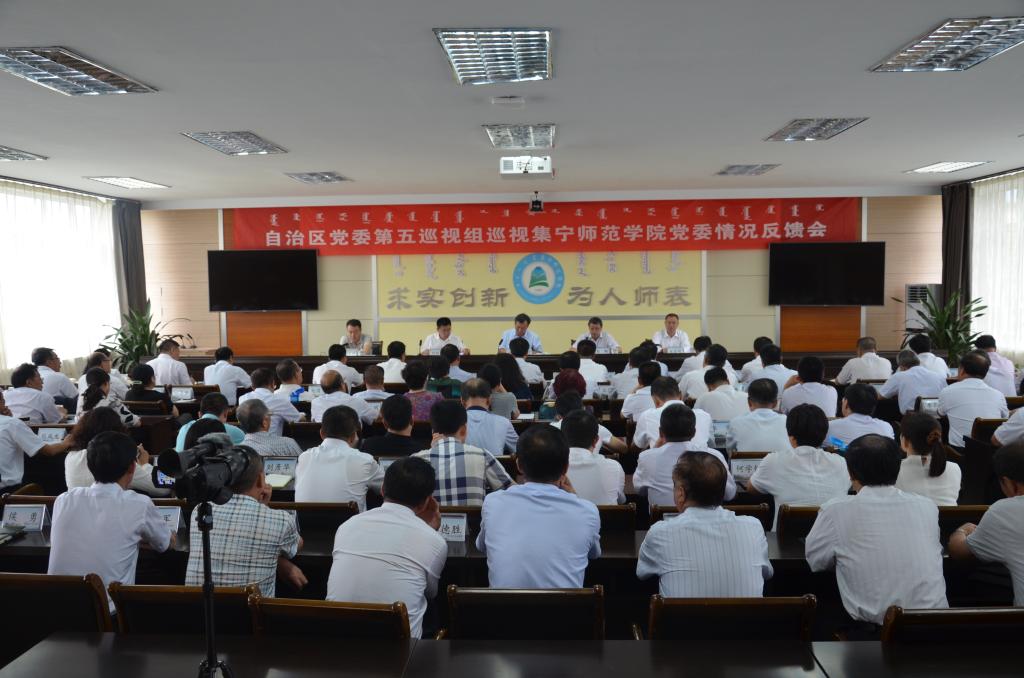 根据自治区党委巡视工作领导小组安排,2018年7月8日,自治区党委第五巡视组向beat365在线唯一官网党委反馈巡视情况。自治区党委巡视工作领导小组办公室副主任周苏军向beat365在线唯一官网党委书记刘前贵传达了自治区党委书记李纪恒同志在书记专题会议听取十届党委第三轮巡视情况汇报时的讲话精神,自治区党委第五巡视组组长高鹏代表巡视组分别向beat365在线唯一官网党委书记和领导班子反馈了巡视情况,beat365在线唯一官网党委书记刘前贵就做好巡视整改工作作了表态。