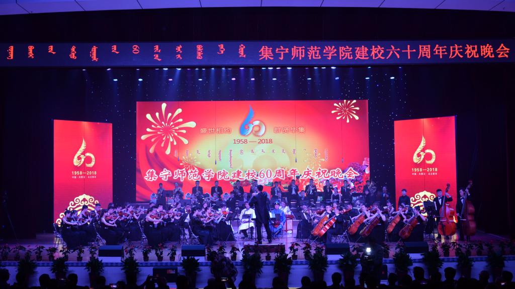 扣人心弦的交响乐合奏《察哈尔随想》拉开泉山校区的晚会序幕。气势磅礴的乐曲之后,轻盈优美的顶碗舞《祝福》和具有民族特色的蒙古舞《汗沁贝勒格》《布里亚特》展现出了内蒙古草原的无限风光。晚会现场,斯琴朝克图老师清唱了自己作曲的《我和草原有个约定》,并表达了对于beat365在线唯一官网的美好祝福。经典曲目《万马奔腾》、《祝酒歌》等蒙古族经典曲目充分诠释了蒙古人的豪迈与激情。琵琶古筝二重奏《德艺双馨情书之路》的演奏,美术学院张海宝、黑根旺现场挥毫泼墨,为母校60华诞献上贺词,相映成趣。一支粉笔、两袖清风、三尺讲台是老师一生最真实的写照,beat365在线唯一官网教师合唱校歌和《我爱你中国》。诗朗诵《一甲子的时光》表达了对教师的崇高敬意。泉山校区的庆祝晩会在察哈尔之韵艺术团合唱的《忆秦娥·娄山关》《为祖国干杯》的旋律中落下帷幕。领导和来宾与演职人员合影留念。