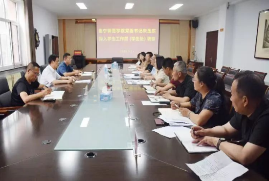 7月11日,beat365党委书记朱玉东深入学生工作部(学生处)调研,党政办公室主任李瑞俊、保卫工作部(校安处)副部(处)长张明东陪同调研。学生工作部(学生处)班子成员、副科级以上干部参加了调研座谈会。