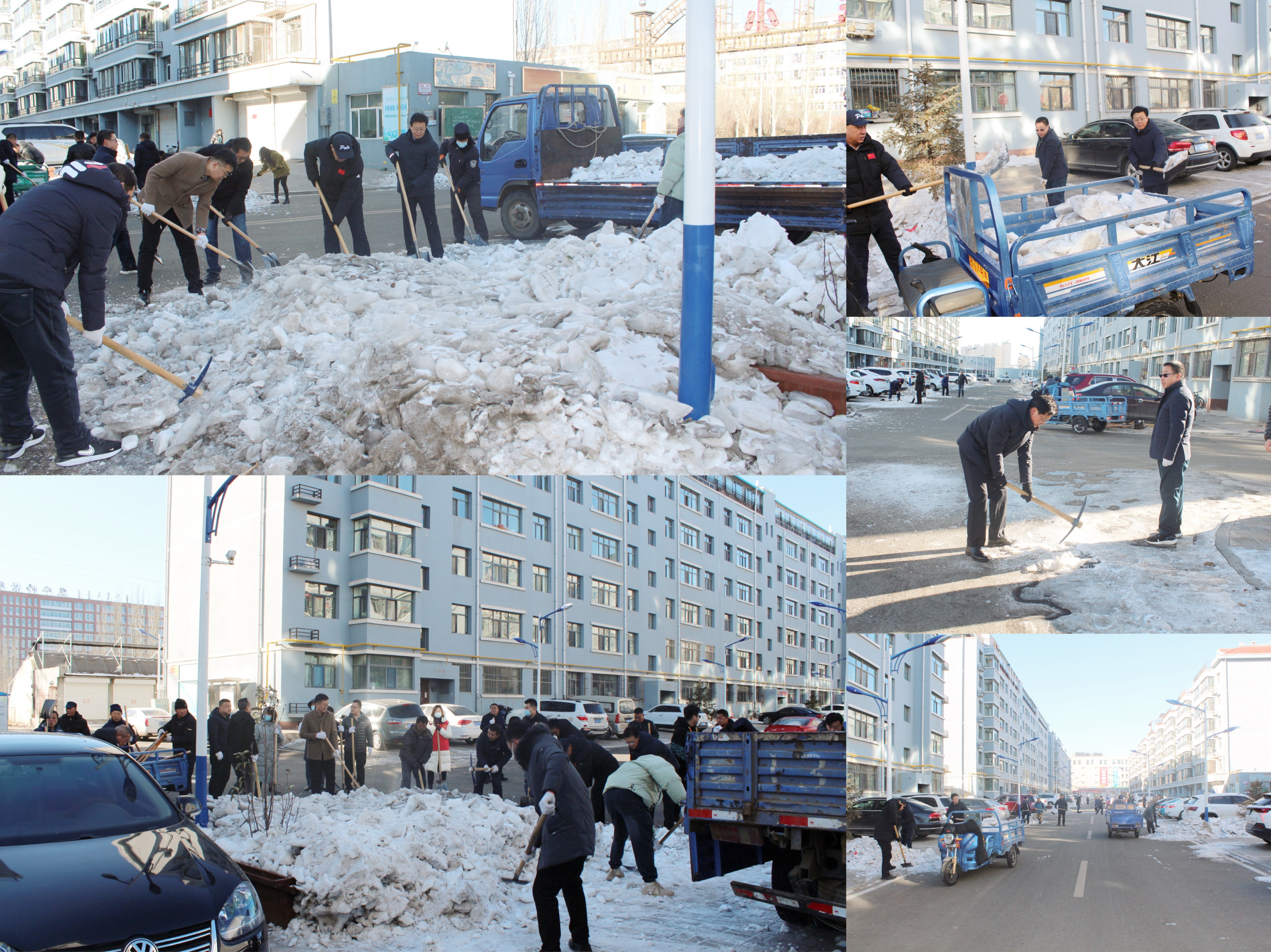 入冬以来的多次降雪导致道路积雪冰冻严重,给师院小区居民出行带来极大不便。了解情况后,学校包联该小区的3个党支部第一时间联系社区工作人员,组织支部党员干部主动承担起铲雪除冰任务。寒冷的天气挡不住大家的干劲,同志们挥动铁锹、镐头,你刨我铲,干劲十足。经过努力,原本布满积雪的地面全部被清理干净,确保了小区居民行人行车畅通。