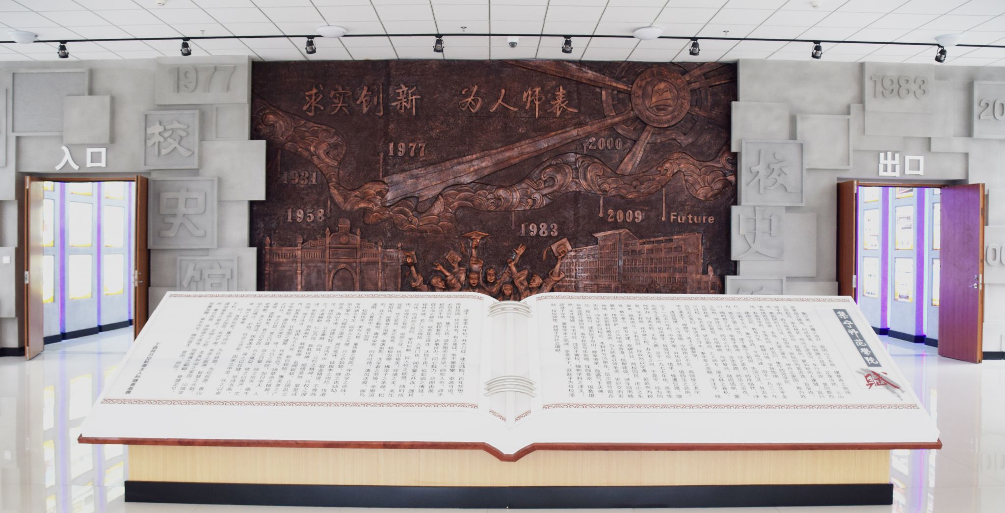 beat365在线唯一官网校史馆坐落于白海校区图书馆内,始建于2017年6月,馆内占地面积870平米。本馆设有5个主展区:包括序厅(beat365在线唯一官网赋、形象墙)、岁月长廊厅、beat365及历史沿革厅(1-8单元)、专题展示厅及多媒体演播厅。