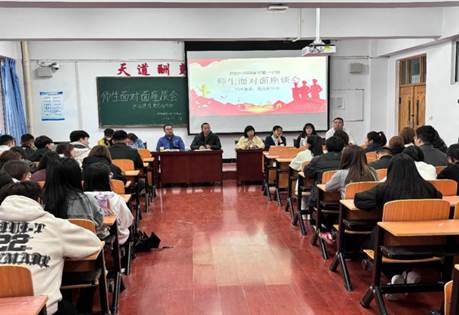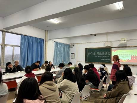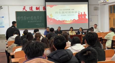 随后,两个教师党支部书记分别介绍了本次座谈会的目的和意义,强调了学风建设对于学院整体发展的重要性,鼓励学生们敞开心扉,畅所欲言。与会学生就课程学习、职业规划、考研考公、生活困难等方面提出了问题,分享了学业上的困惑和心得,老师们针对学生的问题进行一一解答和回应,并希望师生之间能够积极沟通交流,实现“教”与“学”的互动,使同学们快乐充实地度过大学生活,并学有所成。