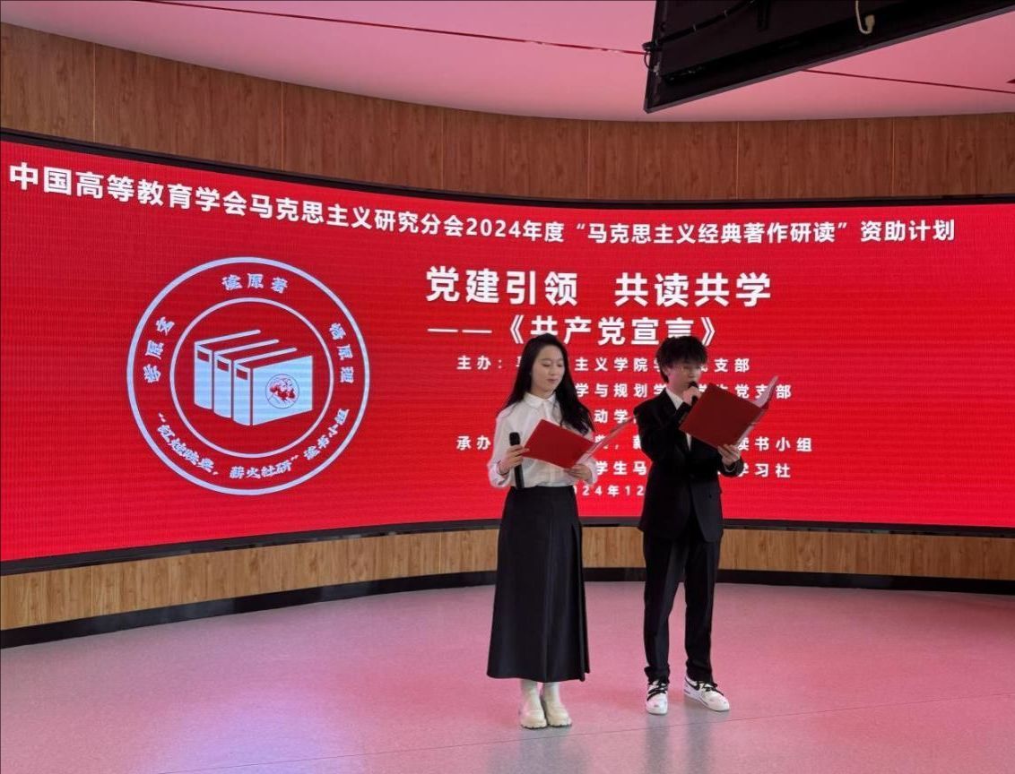 为让广大党员感悟马克思主义的真理力量、坚定马克思主义信仰、提高运用马克思主义基本原理解决实际问题的能力和水平。12月12日下午,马克思主义学院,体育与运动学院,地理科学与规划学院学生党支部于主教楼201联合举办“党建引领共学”读书分享会主题党日活动,各院学生党员,发展对象参加本次活动。