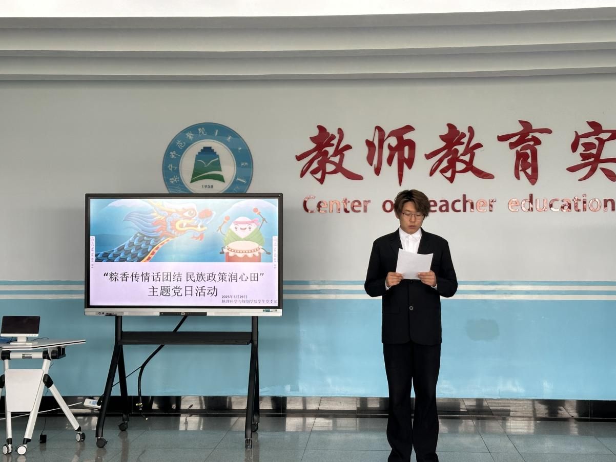 为弘扬中华民族优秀传统文化,深化党建引领基层治理,5月29日,地理科学与规划学院党总支组织师生党支部联合开展“粽香传情话团结,民族政策润心田”主题党日活动,师生党员、发展对象、入党积极分子参加。
