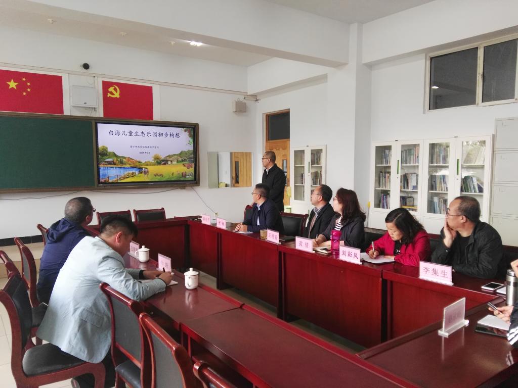座谈会上,白利军就白海镇区位优势、环境资源、人口概况、乡村建设思路以及待规划场地现状作了详细介绍。他进一步表达了镇党委与学院党总支在探索城市基层党建联动方面的良好意愿,提出了以党建为引领在旅游规划、集体经济发展、特色小镇建设等方面与学院深入开展校地合作的初步构想。