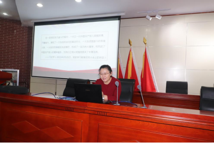马克思主义学院张爱梅老师以“赓续红色精神,开拓时代新境界——解读中国共产党精神谱系”为题,用丰富的历史事件系统阐述了对中国共产党精神谱系的宏观理解、对中国共产党精神谱系初步构架及中国共产党精神谱系的特点和时代意义。