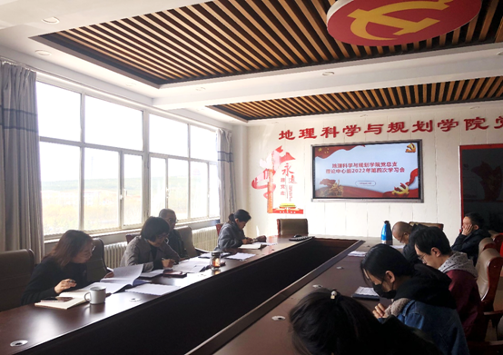4月28日上午,地理科学与规划学院党总支组织召开了理论中心组2022年第4次学习研讨会。除有课教师外,全体教师参加学习研讨。党总支书记刘晓霞主持会议。