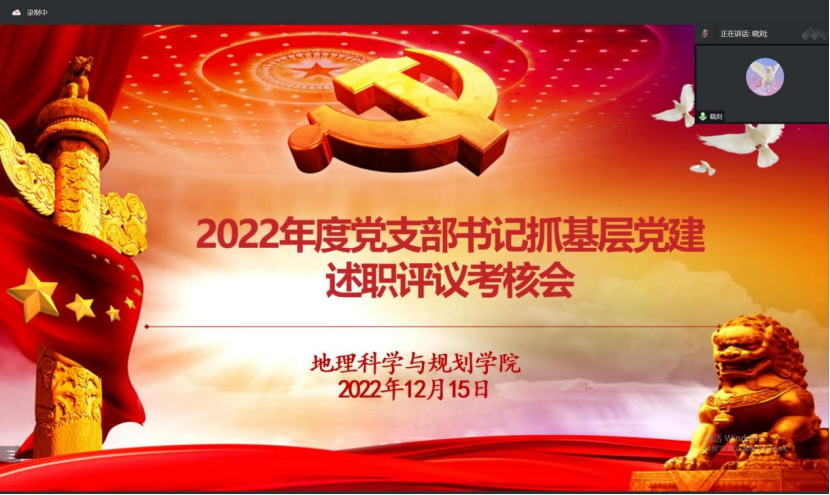 为进一步压实党支部书记抓基层党建“第一责任人”职责,提高基层党建工作质量,按照学校党委统一部署,12月15日下午,地理科学与规划学院组织召开2022年度党支部书记抓基层党建述职评议考核会。会议采线上述职方式进行,学院全体教师参加会议。党总支书记刘晓霞主持会议并点评。
