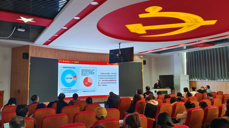 活动中,马克思主义学院晓荣老师以“全面从严治党永远在路上”为题,从为什么要全面从严治党、十年以来全面从严治党取得的伟大成就、如何理解全面从严治党这场伟大自我革命三个方面进行了讲解。讲座内容重点突出、分析透彻,具有很强的思想性、理论性和指导性,对于全体党员干部职工学习理解党的二十大精神具有重大现实意义。