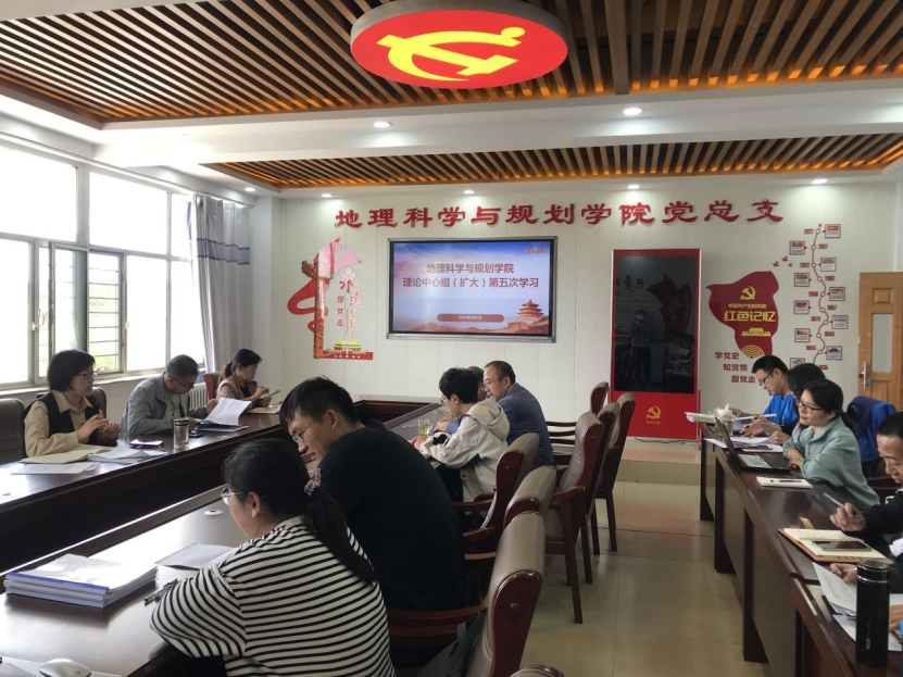 6月1日下午,地理科学与规划学院在教学主楼603会议室召开2023年理论中心组第5次(扩大)学习会议。学院全体教师参加会议,党总支书记刘晓霞主持会议。