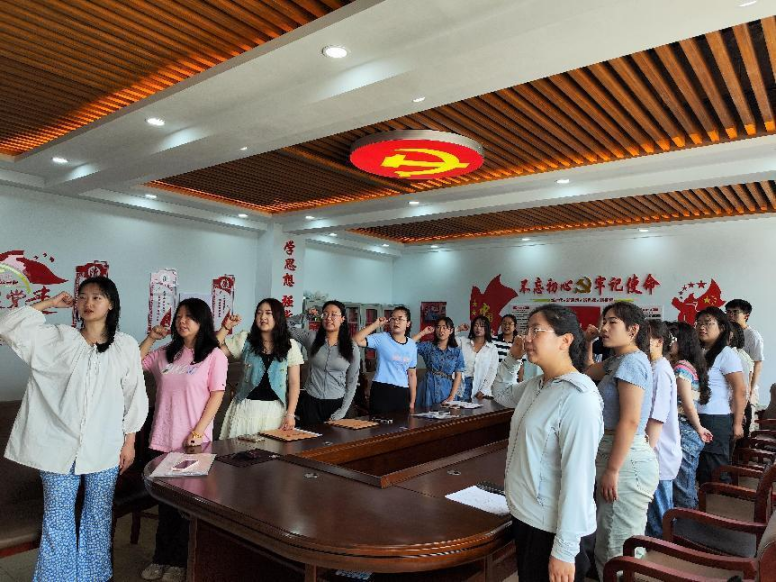活动最后,赵娜带领毕业生们重温入党誓词,面向党旗,右手握拳再次庄严宣誓,在一句句铿锵有力的誓言中,此次党课落下帷幕。赵娜叮嘱毕业生党员们要牢记母校嘱托,担当青年使命,以昂扬姿态踏上人生的新征程,以实际行动为母校增光、为党旗添彩,让青春在全面建设社会主义现代化国家的火热实践中绽放绚丽之花!预祝各位毕业生党员前程似锦,未来可期!