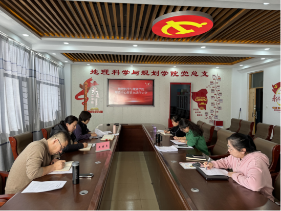 12月26日下午,地理科学与规划学院在教学主楼603会议室召开2023年理论学习中心组第16次学习研讨会议。本次学习的主题是“习近平文化思想”和“学深‘八八战略’,践行实干担当”。学校党委统战部副部长周丽青巡听旁听会议。学院理论学习中心组全体成员参加会议,党总支书记刘晓霞主持会议。