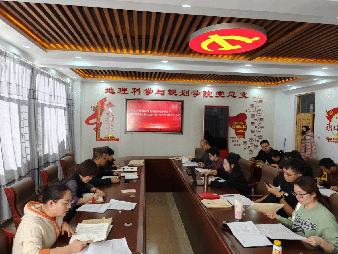 1月10日下午,地理科学与规划学院党总支在教学主楼603会议室召开2025年理论学习中心组第1次学习(扩大)会议。理论学习中心组成员及全体教师参加会议,党总支书记刘晓霞主持会议。