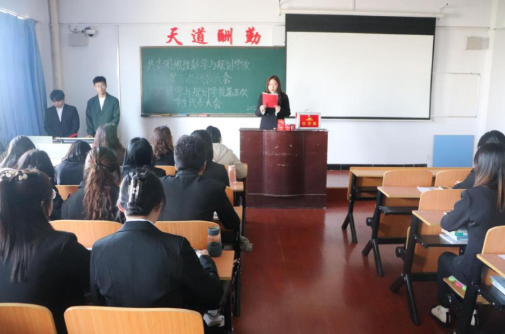 10月6日,地理科学与规划学院组织召开第五次团(学)代会,学院党总支书记刘晓霞、副院长暴向平、党总支副书记黄倩、团总支书记赵娜、学团办公室副主任邢晓彬以及25名学生代表参加会议。