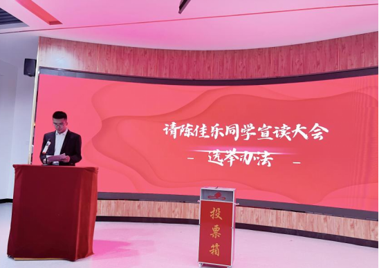 大会第三项,陈佳乐同学宣读《地理科学与规划学院学生会选举办法(草案)》