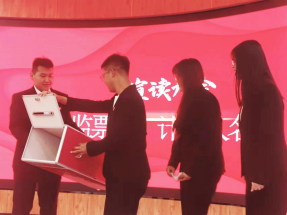 大会第四项,大会通过监票人、计票人名单。监票人:吴阳阳、郁卓霖,计票人:马琼、韩嘉续。