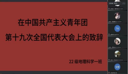 活动期间,各团支部组织同学们线上学习习近平总书记同团中央新一届领导班子成员集体谈话时的重要讲话精神、中国共产主义青年团第十九次全国代表大会报告、在中国共产主义青年团第十九次全国代表大会上的致词,并交流分享学习心得。