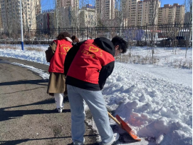 在返校开学季,志愿者们协助同学们搬运新宿舍的床垫,及时为宿舍做好整理工作,同时,由于近日持续性强降雪天气,为保障师生出行安全和正常教学工作生活秩序,主动有序参与校内积雪结冰道路的扫雪除冰志愿服务。