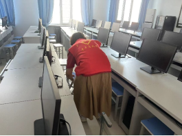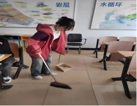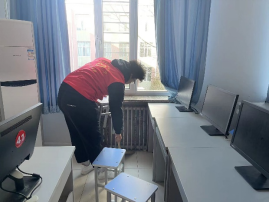 各团支部组织团员青年打扫了主教楼六楼所有教室、办公室及网络楼实验室,每个人都切身投入到打扫卫生的行动中。在打扫卫生过程中,同学们分工明确、互相配合、齐心协力,秉持着“不怕脏、不怕苦、不怕累”的精神,有条不紊地打扫,全面营造整洁卫生的学习环境。