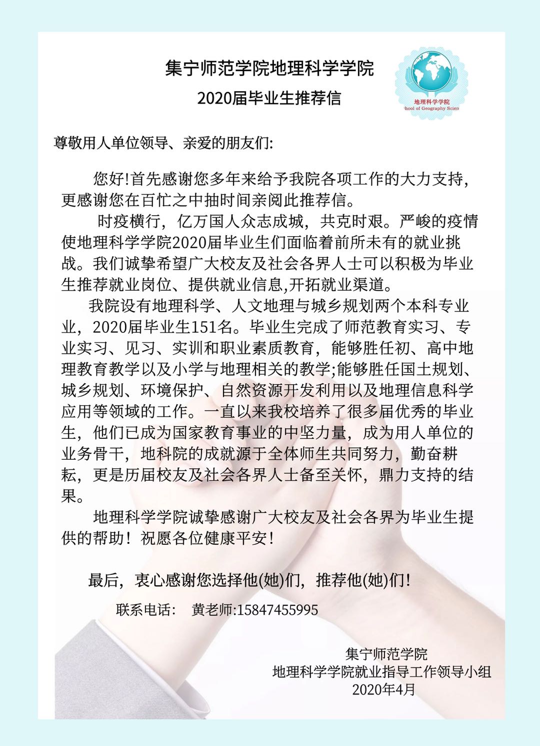 beat365在线唯一官网地理科学学院2020届毕业生推荐信