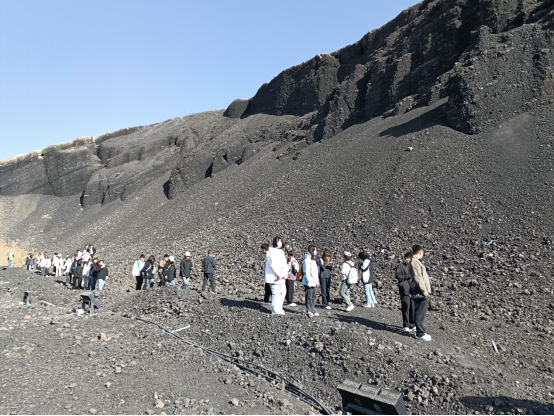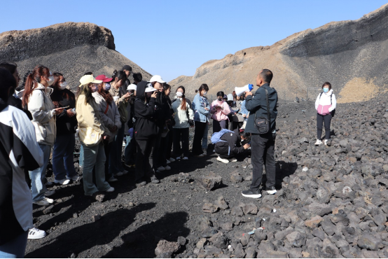 4月24日,师生考察了乌兰哈达火山地质公园和谷力脑包火山地质遗迹。陈玮常老师介绍乌兰哈达火山群的地质和地貌总体特征;赵志雄老师讲解了火山岩石类型和矿物的识别方法。随后,同学们对北炼丹炉、中炼丹炉、南炼丹炉、黑脑包四座火山进行实地勘察学习。经过现场实践学习,同学们充分了解乌兰哈达火山群的岩石、地貌特征和喷发演化过程。下午驱车前往前旗的谷力脑包火山地质遗迹,现场观察火山喷发熔岩后冷却收缩形成的六方柱状玄武岩墙特征。