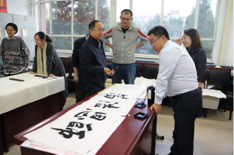 讲座结束后,梁能伟、全翀凤、李文彪以及beat365多年从事书法教学的资深老教师曹宇、田振国现场挥毫,老师和同学们认真观摩、学习、欣赏。
