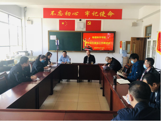 4月13日下午,地理科学学院组织召开2020届毕业生就业工作推进会。地理科学学院班子成员、毕业班班主任以及辅导员参加会议。会议由党总支副书记张强主持。