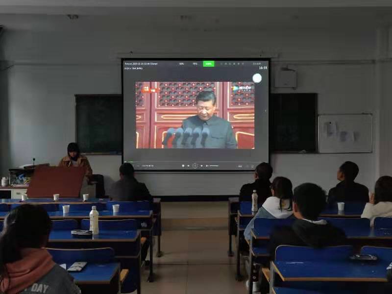 本次活动围绕学习“习近平总书记建国70周年阅兵大会讲话”精神的主题开展,同学们积极参加活动,准备了丰富多彩的节目,主要包括集体观看习近平总书记讲话视频、诗朗诵、三句半和集体歌唱《歌唱祖国》等。