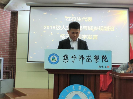 在校生代表杨子龙也为即将毕业的学长学姐们送上了最真挚的祝福,希望她们在今后广阔的社会舞台上,尽情挥洒智慧,成为不平凡的自己。