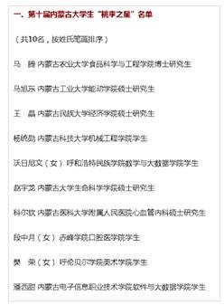 根据《关于开展第十届内蒙古大学生“桃李之星”选树活动的通知》(内党宣发电〔2022〕14号)有关要求,经评选及研究,2022年6月8日,第十届内蒙古年度大学生“桃李之星”名单及提名奖名单出炉。我院2019级地理科学一班学生洪月(女)入围“桃李之星”提名奖。