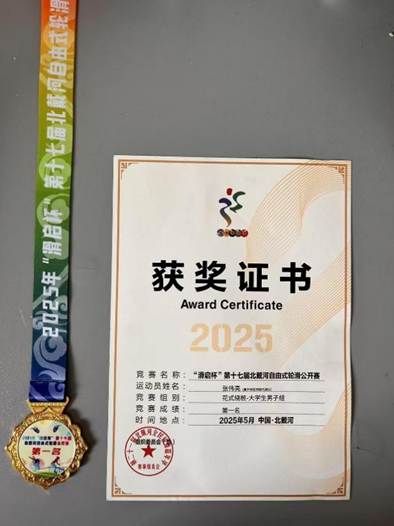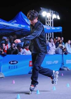 经过激烈角逐,我院学生张伟亮荣获自由式轮滑公开赛花式绕桩—大学生男子组第一名。